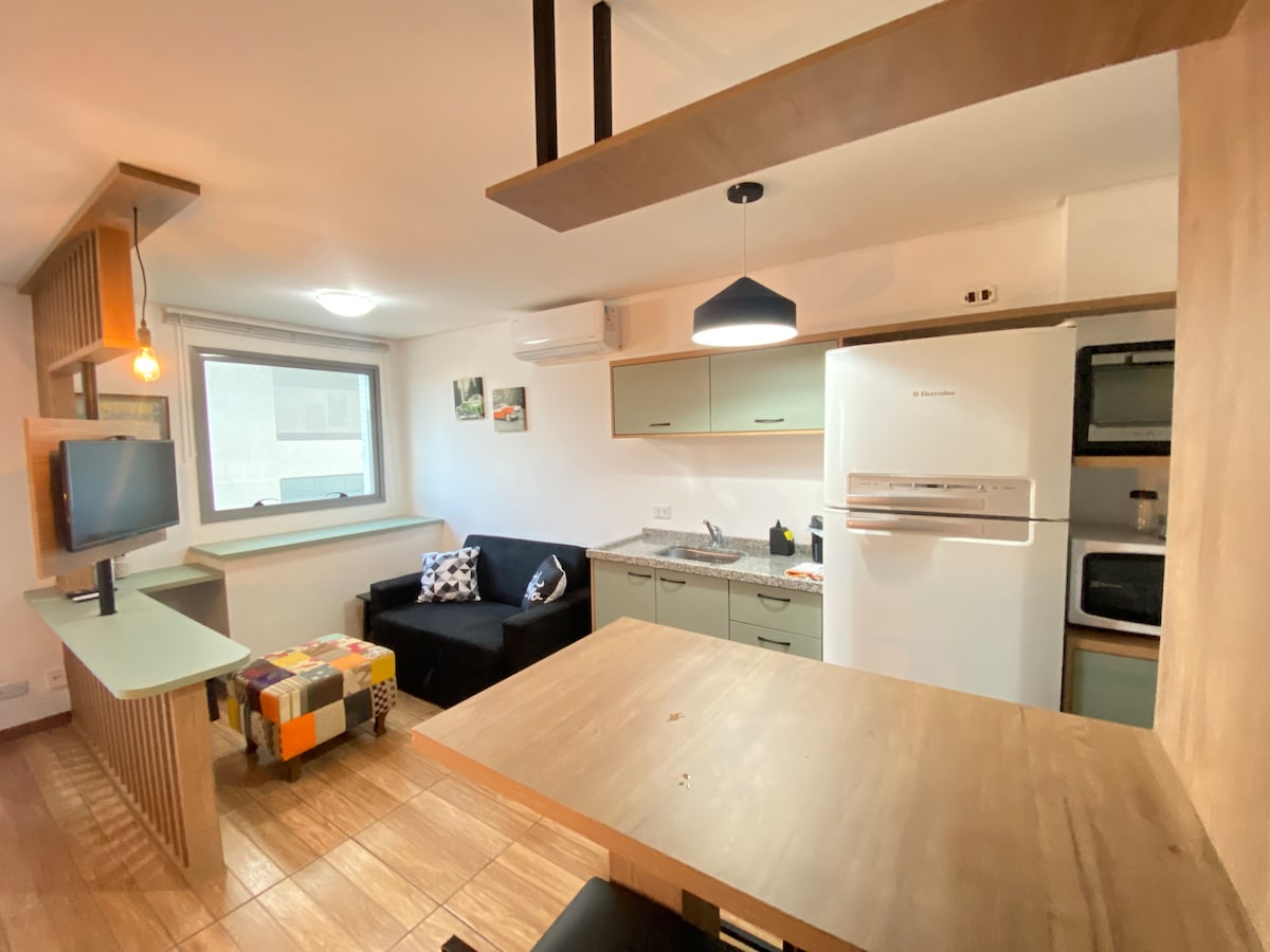 Studio moderno e confortável c/ garagem e ar cond