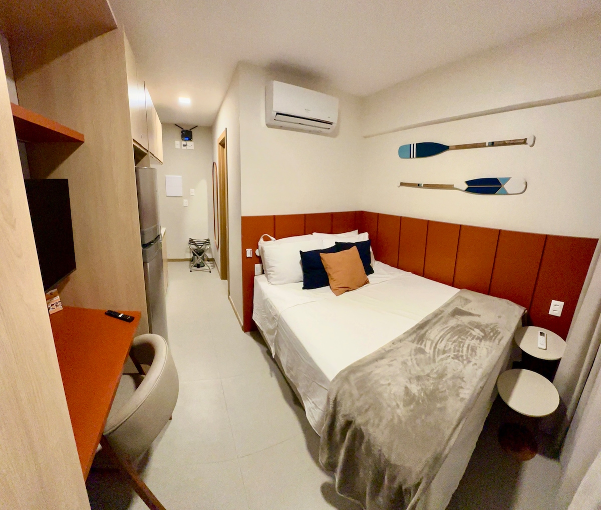 Trezește-te cu vedere la mare a patului matrimonial, lucrează cu Atlanticul în fața ta și relaxează-te pe balcon cu sunetul valurilor. La 7 minute de Praia do Farol și lângă Shopping Barra, confortul tău este garantat! Escapada ta include: · Vedere minunată la mare! · Cumpărături atașate (mâncare, cinema, cumpărături) · Piscină, Wi-Fi turbo și concierge non-stop · Spațiu de lucru · Aer condiționat și Smart TV Viva Salvador cu toporul în inimă și marea în ochi!