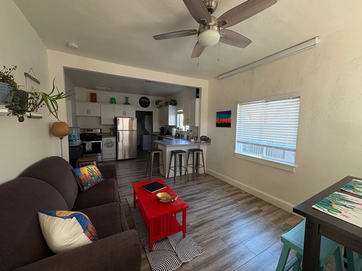Your own private 1-bedroom guest house in the heart of historic Garfield—one of Phoenix’s most vibrant and artistic neighborhoods. You’ll be just blocks from downtown, the Convention Center, First Friday Artwalk, Roosevelt Row entertainment district, and the light rail, plus only steps from two of the city’s favorites: Gallo Blanco and Welcome Diner. Inside, enjoy all the comforts of home, including a full kitchen, in-unit washer/dryer, and AC. Outside, relax in your own private courtyard with s