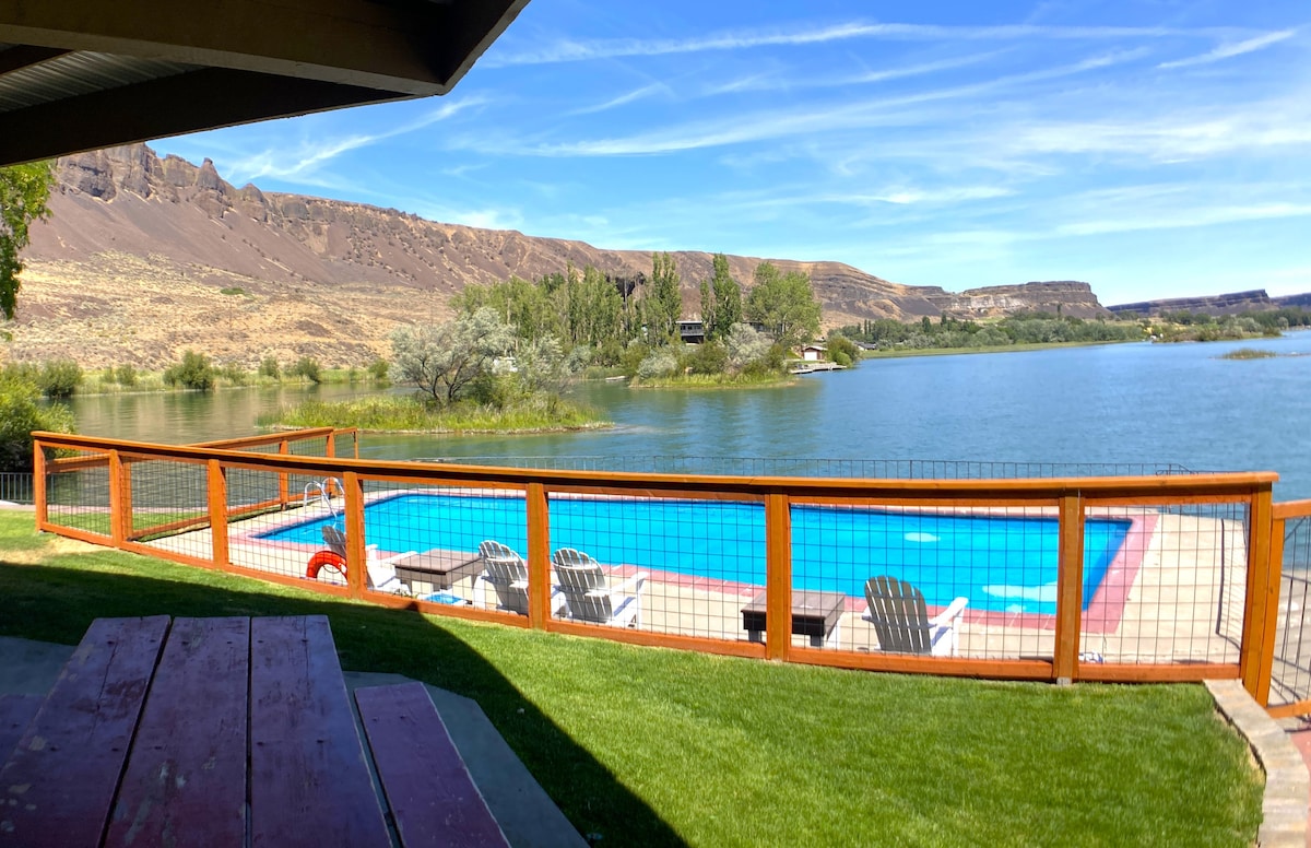 Bine ai venit în casa ta departe de casă, lângă Soap Lake. Amplasată în pitorescul teren de golf Lakeview, această casă rafinată cu 5 dormitoare și 2 băi oferă un refugiu de neuitat pentru familii și grupuri care caută relaxare și aventură în aer liber. Interior modern spațios, primitor și frumos amenajat. Interior deschis, ferestre mari cu priveliști uluitoare asupra terenului de golf, uși mari către terasa supradimensionată și piscină încălzită de 16 x 32 cu zonă de relaxare la soare. Cadă cu hidromasaj pe terasă. Piscina se deschide pe 1 mai 2026.