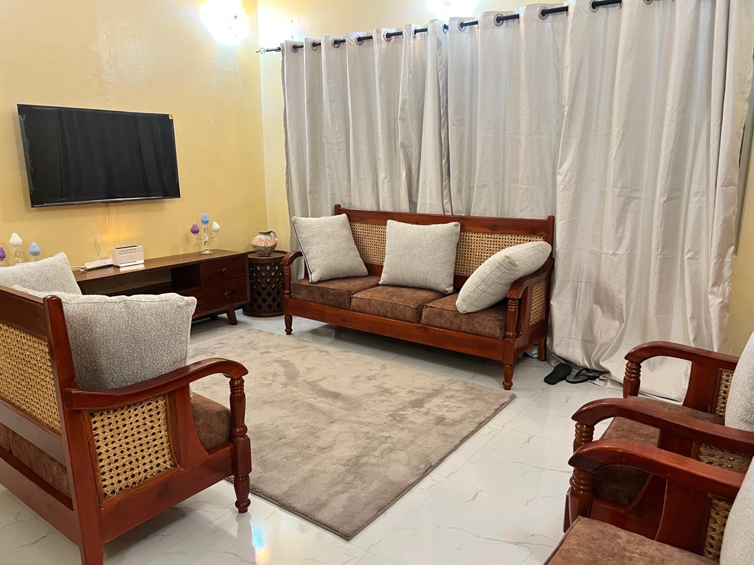 O locuință plină de pace într-un cartier liniștit. Compus împrejmuit sigur, cu agent de pază, parcare gratuită în complex. Verandă acoperită pentru a te bucura de grădini și de climă frumoasă. Parter: două dormitoare autonome, living, bucătărie cu facilități de gătit și frigider, magazin și baie publică. La primul etaj două camere suplimentare și spațiu mare deschis. Acces ușor la mijloacele de transport în comun. Vedere frumoasă asupra muntelui Kilimanjaro.