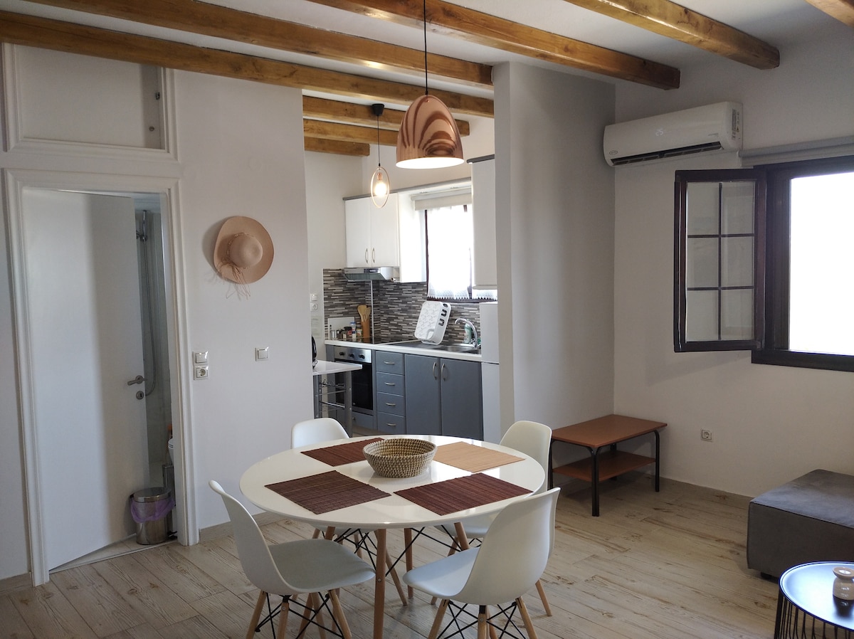 Enjoy a stylish experience at this centrally-located place.Newly renovated 1-bedroom house ,every single detail matters. Only 2mins walk to the old-port and 1mins walk to the traditional market street, Romeikos-gialos beach and the night-life spots