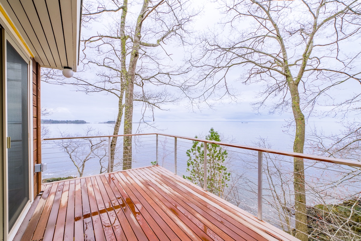 Sunny eco-friendly cottage on Route 1, steps from the beach! A cozy studio with a Murphy bed, a full bath, and kitchenette - stovetop, fridge, toaster, & microwave. Beautiful views of Penobscot Bay – don't worry, the blinds will keep the sunshine at bay when you need a nap! You're within easy walking distance of sandy beaches, restaurants, shops, a coffee roaster, and a market. Explore nearby hiking trails, Mount Battie, and the charming towns of Belfast, Camden, Rockport, and Rockland.