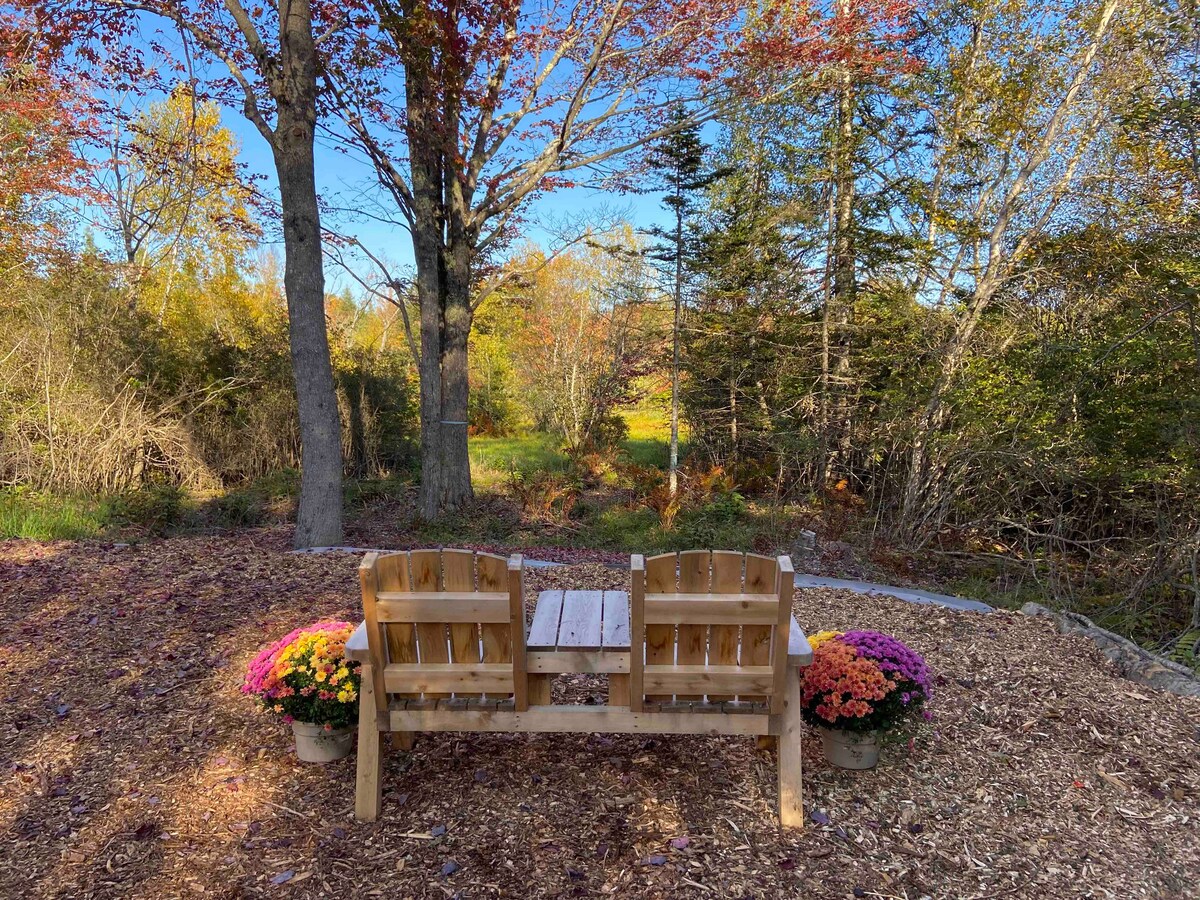 Bucură-te de casa noastră confortabilă, departe de casă, printre pini falnici și bolovani de granit — răgazul perfect după explorarea Acadiei. Cabana noastră nou construită are farmecul rustic din Maine și confort modern: aer condiționat, duș cu cascadă, saltele cu spumă cu memorie, șemineu interior cu gaz, vatră cu gaz în aer liber, grătar cu gaz, cadă cu hidromasaj, 4KTV, internet de mare viteză, bucătărie modernă, apă filtrată, gamă de gaz, aparate electrocasnice de înaltă calitate și mașină de spălat/uscător cu încărcare frontală.