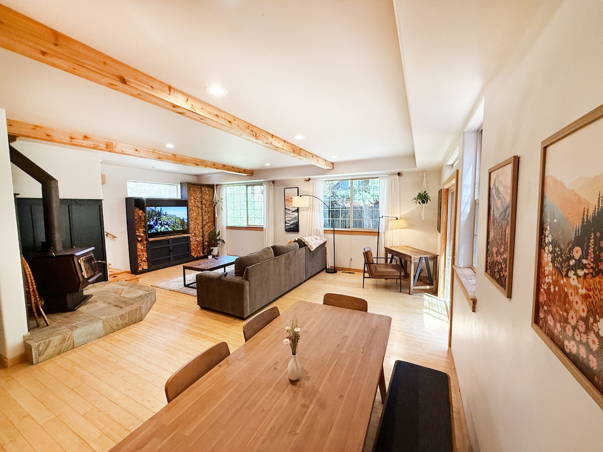 ☀️ 2 străzi de malul nordic al lacului Tahoe 🛶 Acces gratuit la caiace, plăci cu vâsle, veste de salvare, vagoane și scaune de camping Cadru 🏕 A 3BR complet remodelat de la mijlocul secolului Bucătărie 🍳 gourmet cu gamă Wolf + electrocasnice premium + condimente complet aprovizionate 🌲 Terasă privată și curte în spate pentru luat masa în aer liber și relaxare Zonă de living 🔥 confortabilă cu șemineu pentru serile răcoroase din Tahoe 🎿 11 mile până la Palisades Tahoe, Alpine Meadows și Northstar Rezervă astăzi escapada de vară de neuitat din Tahoe!
