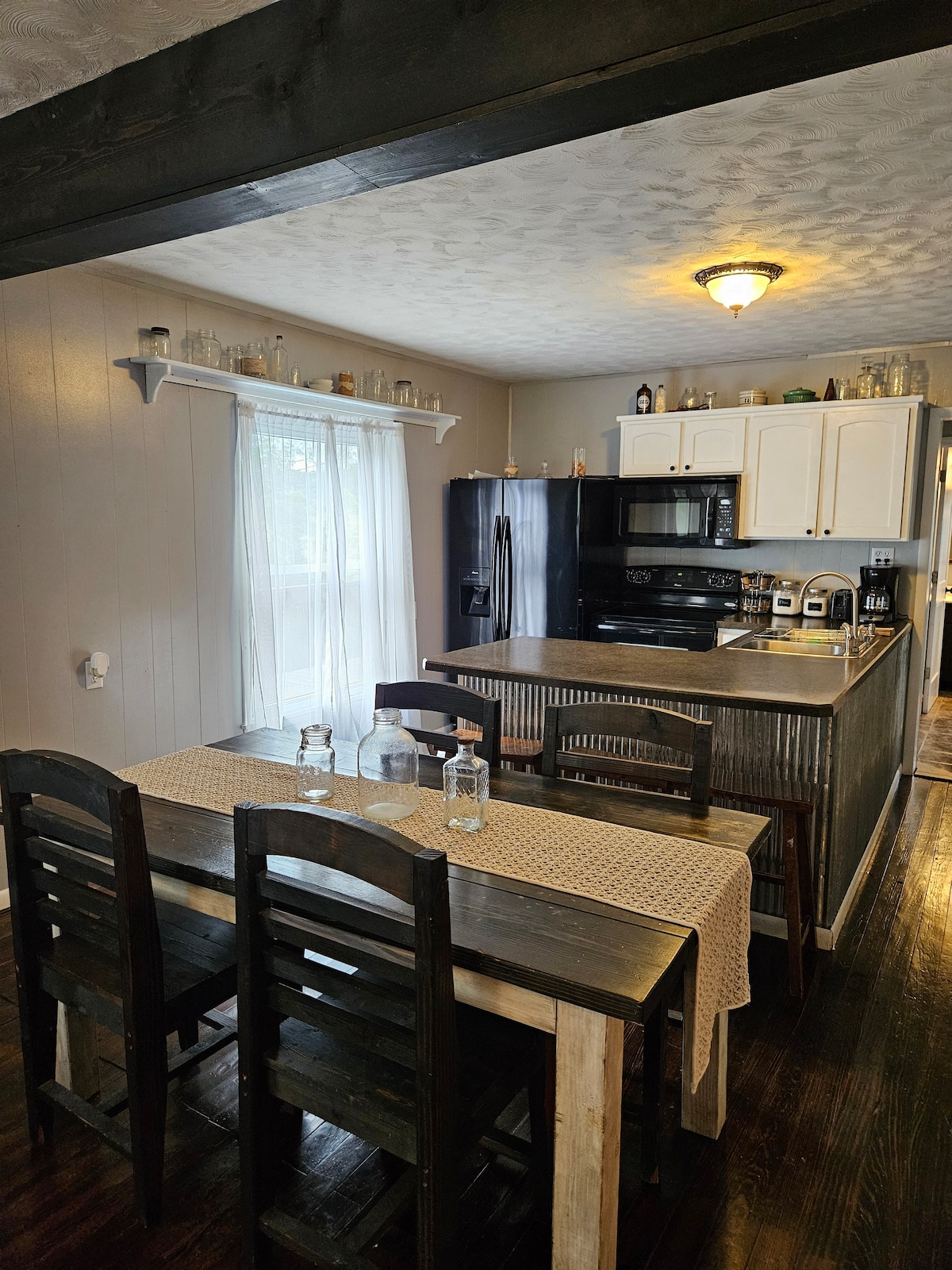 Our Country Lace Retro Place este o garsonieră pitorească, amplasată la etaj, cu vedere la dealurile noastre ondulate din Ozark, cu viață sălbatică abundentă (care poate fi scenă dimineața devreme sau seara târziu) și frunziș... mobilat cu prăjitor de pâine, cuptor cu microunde, frigider, aparat de cafea și cuptor cu friteură cu aer Nija Flip up. Baie completă cu uscător de păr mobilat și lenjerie de pat. Spațiul de locuit include un pat king-size, o canapea și un scaun supradimensionat. De asemenea, avem WI-FI și televizorul nostru retro personalizat...