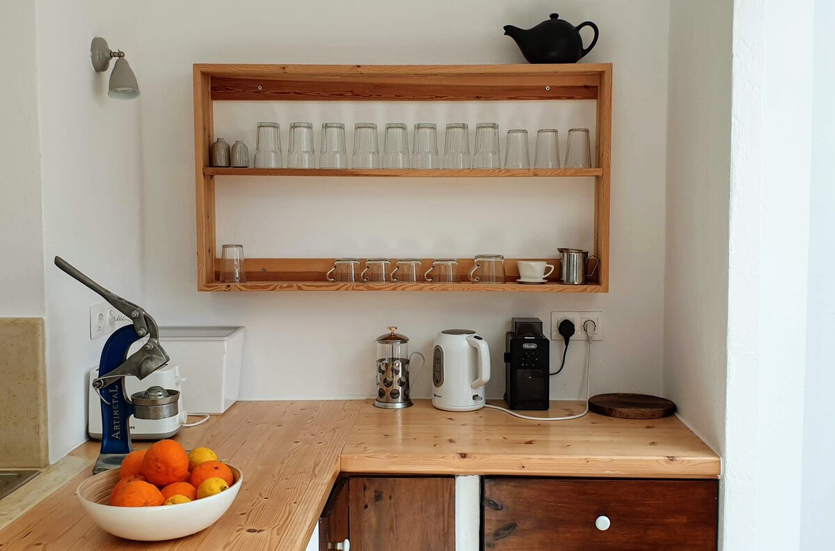 La marginea satului Aptera, Vila Măslinilor Roșii este o casă unică și liniștită, cu vedere la Munții Albi. Relaxați-vă în vila noastră spațioasă și bucurați-vă de mese pe terasa rece de piatră, cu vedere spre grădina mediteraneană plină de fructe și flori parfumate. Odihnește-te lângă piscină (7mx4m) sau la plaja locală, la mai puțin de 10 minute de mers cu mașina. Tavernele satului se află la 500 m de mers pe jos de casă, oferind o primire călduroasă și cea mai bună bucătărie locală. Dormitoarele au aer condiționat și baie privată.