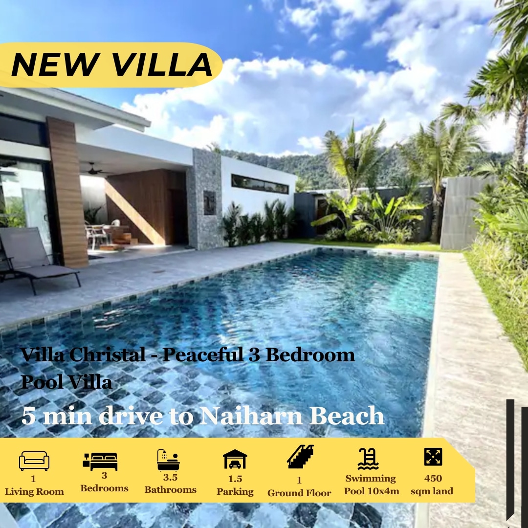 O vilă confortabilă cu piscină cu 3 dormitoare situată în apropierea Chalong Rotary, situată convenabil pe mai multe plaje.Vila este situată pe o alee liniștită, liniștită și confortabilă și foarte sigură. Vila are un teren de 1000 mp, cu piscină privată, grădină în aer liber și spațiu separat pentru mașină. Vila se află la numai 8 minute de mers pe jos de supermarketul Lotus, la 3 minute cu mașina de templul Chalong și la 3 km de cheiul Chalong. Vila este configurată cu o piscină privată și o zonă supradimensionată în aer liber, poate fi furnizat grătar cu grătar.