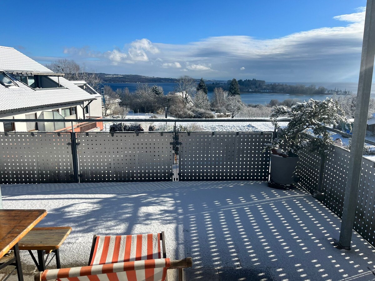 Apartament frumos cu o cameră, cu o terasă în mijlocul satului, dar înconjurat de pajiști verzi. Poți merge cu ușurință să înoți (doar 100 m până la o mică plajă publică), iar din multe locuri poți admira priveliștea lacului, până la Überlingen și scena de aterizare din Dingelsdorf - fără agitație, fără stres - doar relaxează-te și bucură-te. Apartamentul nu este situat aproape de drum, în mijlocul unei grădini și al unei livezi aproape de lac. Vederea este limitată numai de pomi fructiferi - vedere frumoasă la lac în timpul iernii.