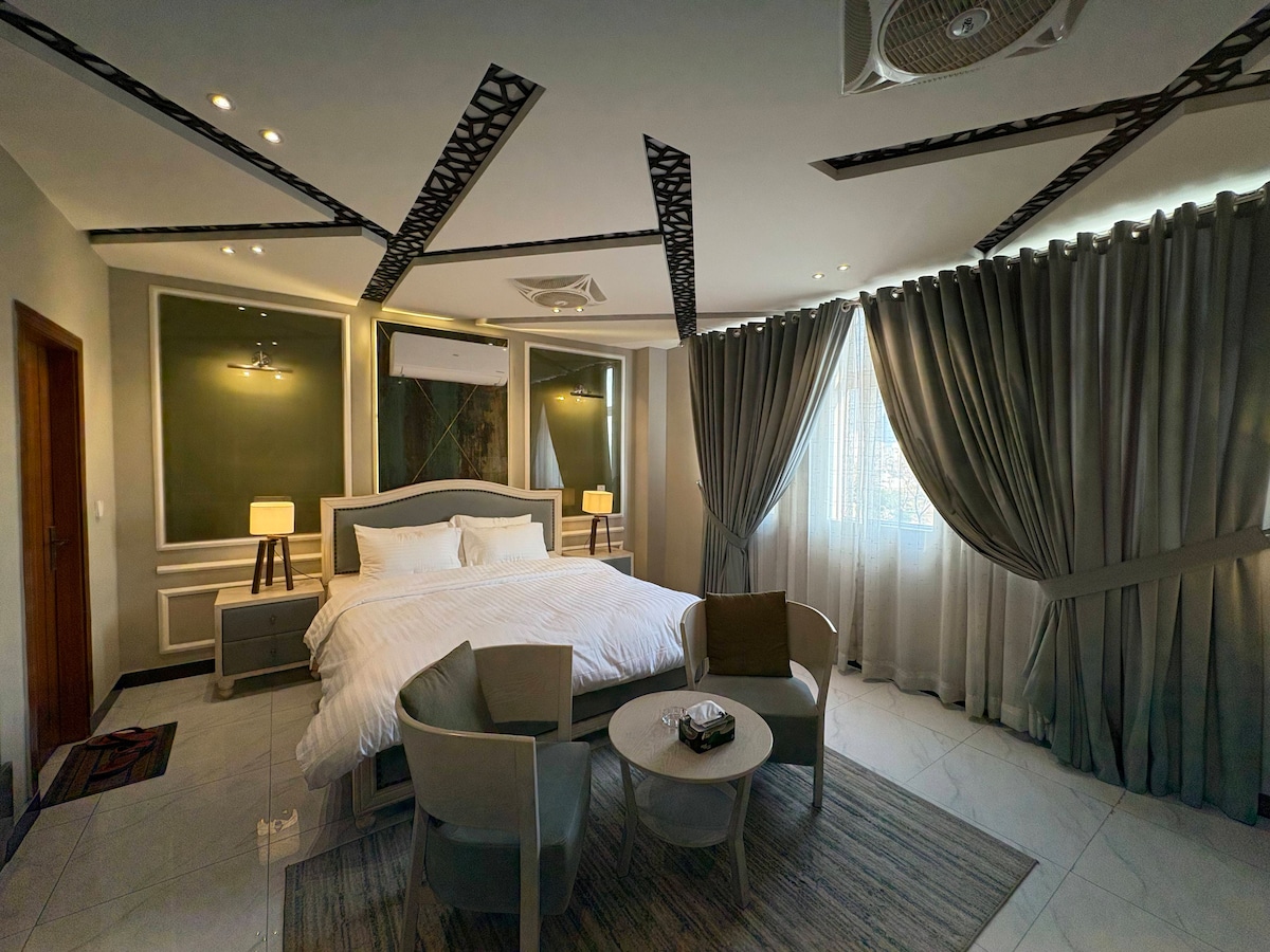 Bine ai venit în refugiul tău elegant și confortabil, la 12 minute de mers cu mașina de Aeroportul Internațional Islamabad! Acest apartament elegant cu 1 dormitor este conceput pentru călătorii de afaceri și oaspeții care caută lux, oferind un amestec de confort, comoditate și sofisticare. Puncte forte ale apartamentului: Spațiu de locuit elegant – mobilier contemporan, zonă de luat masa elegantă și un lounge confortabil pentru relaxare după o zi lungă. Wi-Fi rapid și Smart TV – Rămâi conectat și distrează-te cu internet de mare viteză și un televizor inteligent.