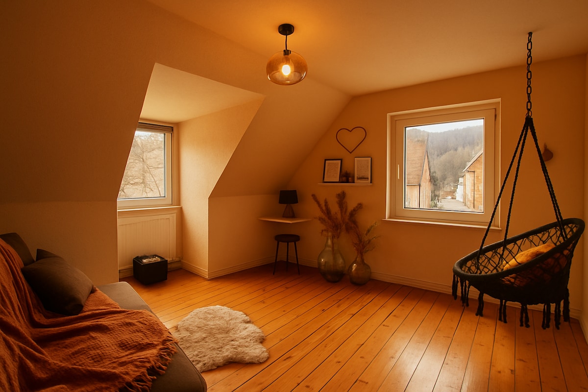 Un studio mic, atipic și confortabil, amplasat pe acoperișurile orașului medieval Munster. Evadare perfectă pentru vizitatorii care doresc să descopere Alsacia într-un studio frumos, combinând căldura unei mansarde din lemn cu eleganța unui design modern de mansardă. Garsoniera este complet echipată pentru șederi de scurtă durată sau mai lungi, cu bucătărie deschisă, living/sufragerie, baie modernă și zonă de dormitor și bibliotecă.