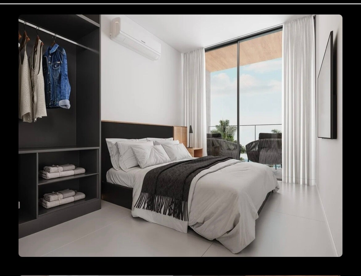 Îmbrățișează simplitatea și confortul în acest apartament liniștit și confortabil, perfect pentru cupluri, cu o capacitate de până la 4 persoane (pat dublu și canapea extensibilă disponibilă). Situat în apropiere de plajă, acesta oferă aer condiționat, Wi-Fi de 600 Mbps și Smart TV pentru confortul tău. Apartamentul are o piscină și o vedere uimitoare la apus. Este la câțiva pași de brutării, farmacii, alimente, pizzerii și restaurante. Totul pentru a-ți face șederea și mai practică și mai plăcută!