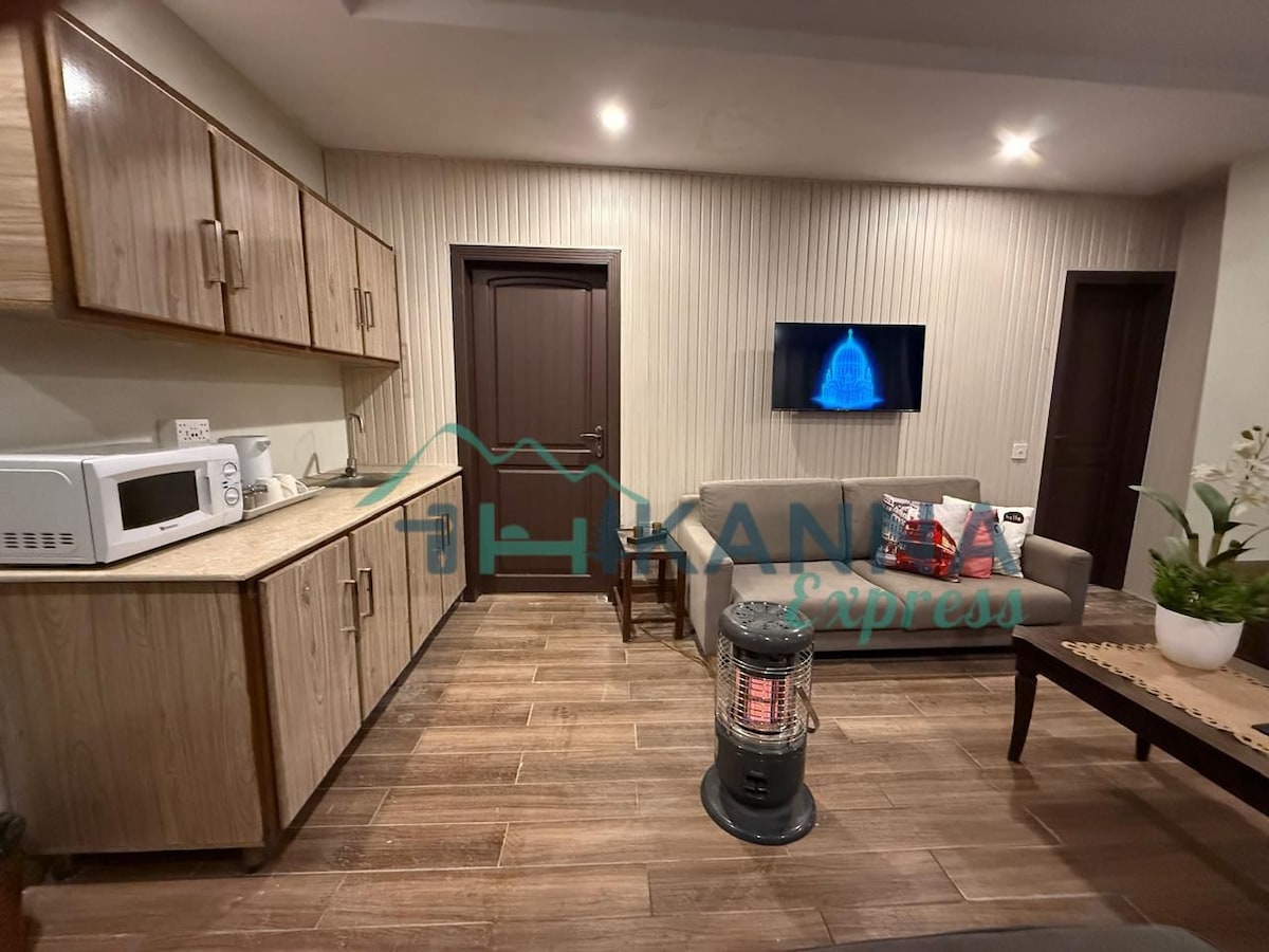 Perfect pentru familii! Bucură-te de un apartament confortabil cu 2 dormitoare, cu un balcon privat imens, care oferă vedere neîntreruptă la munte. Complet echipat cu articole esențiale pentru bucătărie, WiFi, un Smart TV de 70 inch, apă caldă, o masă de sufragerie și un UPS. La doar 2 minute de mers pe jos de CBTL și restaurantele din apropiere și la 4 minute de mers pe jos de Monal & Asian Wok. McDonald's este la 5 minute cu mașina. O cafenea de lângă clădire oferă confort, cum ar fi room service. Acces ușor de la autostrada Murree Expressway - refugiul tău montan liniștit te așteaptă!