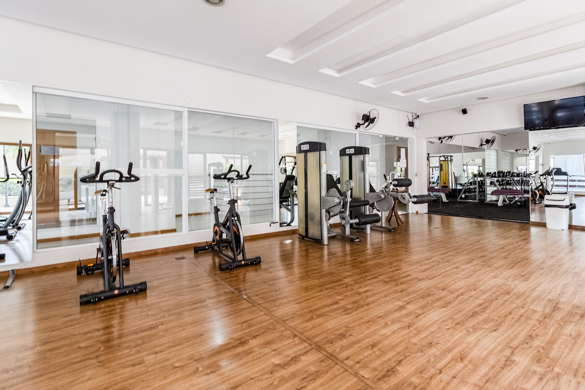 Apartament confortabil și spațios în centrul civic al orașului Curitiba, lângă mall-ul Mueller, MON, spațios și confortabil. Wi-Fi, piscină, academie. Pentru utilizarea unui jacuzzi și a unei piscine, este necesară programarea în avans și o notă a medicului.