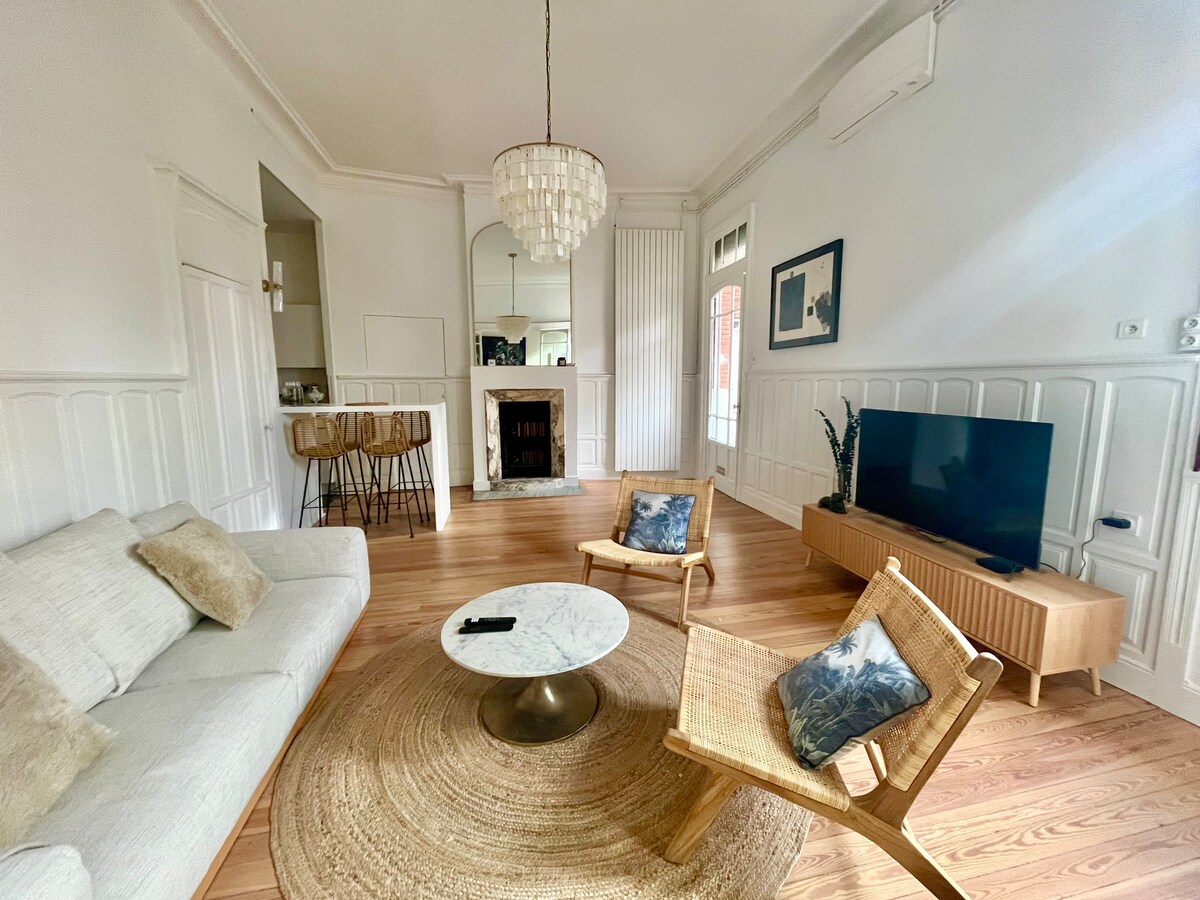 Appartement de 53 m2 situé dans un immeuble Haussmannien, au 2eme étage, avec ascenseur. Entièrement rénové, cet appartement cosy et design, mélangeant l'ancien et la modernité peut accueillir de 1 à 4 personnes. Dans l'hypercentre de Toulouse, dans une rue piétonne, à proximité de la Place du Capitole et du marché Victor-Hugo. Parking Indigo Victor Hugo à 150m Station métro Capitole à 100m Gare SNCF à 1km PAS D’ARRIVÉE AUTONOME max 20h00