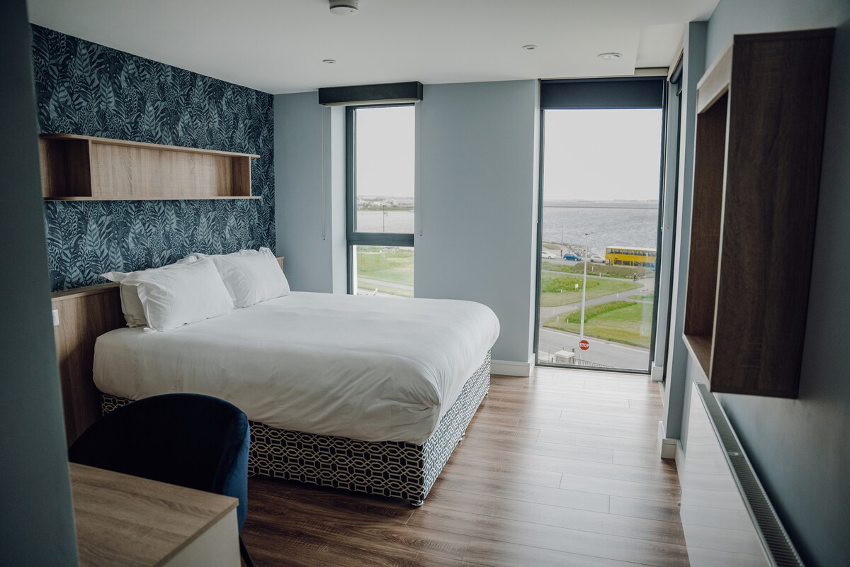 Bucură-te de apartamentul nostru fabulos cu 1 dormitor în inima orașului Salthill, cu vedere la ocean, care oferă apusuri de soare excepționale. Chiar lângă plajă și promenadă. Perfect pentru călătorii singuri, cupluri sau prieteni, apartamentul are un spațiu de locuit modern, luminos, o bucătărie complet utilată, o baie modernă cu duș electric și un dormitor confortabil cu un pat matrimonial. Explorează cafenelele, restaurantele și priveliștile uimitoare ale golfului Galway din apropiere. La doar 20 de minute de mers pe jos de centrul orașului Galway, este refugiul ideal de pe coastă pentru șederea ta.