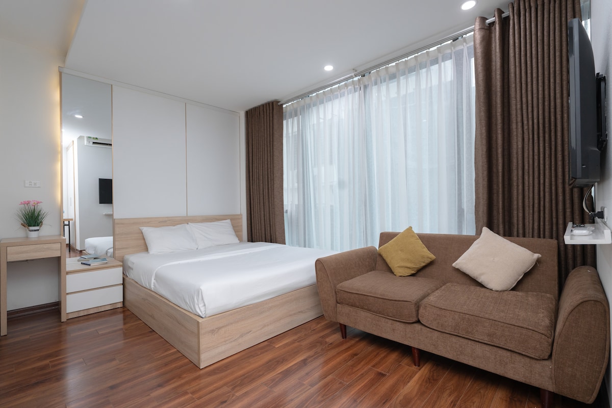 Apartament premium în stil japonez în centrul orașului Hanoi, la câțiva pași de Academia Diplomatică și Universitatea de Comerț Exterior. Oaspeții au acces deplin la întreaga unitate: living, dormitor, baie și bucătărie complet utilată. Autorizată legal pentru șederi de scurtă durată/de lungă durată. Dormitor cu 2 paturi de o persoană sau 1 pat dublu, perfect pentru șederi prelungite. Dotările clădirii: sală de gimnastică gratuită, piscină (2 $/vizită), supermarket, sală de lectură