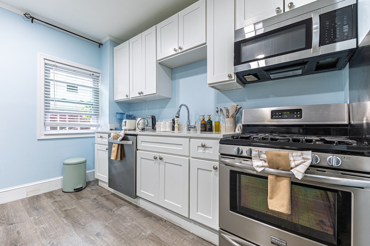1 bedroom, family-friendly apartment in the quiet Morningside neighborhood of Arlington. Can sleep 5. Free driveway & off-street parking. King bed + queen sofa bed in living room + extra twin. 1 full bath, kitchenette with dishwasher (No Oven or Cooktop). NEW washer/dryer combo! 1 mile from the bike path and short drive to Alewife/Davis T stations. Young kids and dog live above (expect some noise). Bus route to Harvard Square nearby. Also close to Wright-Locke Farm with stunning fall hikes.