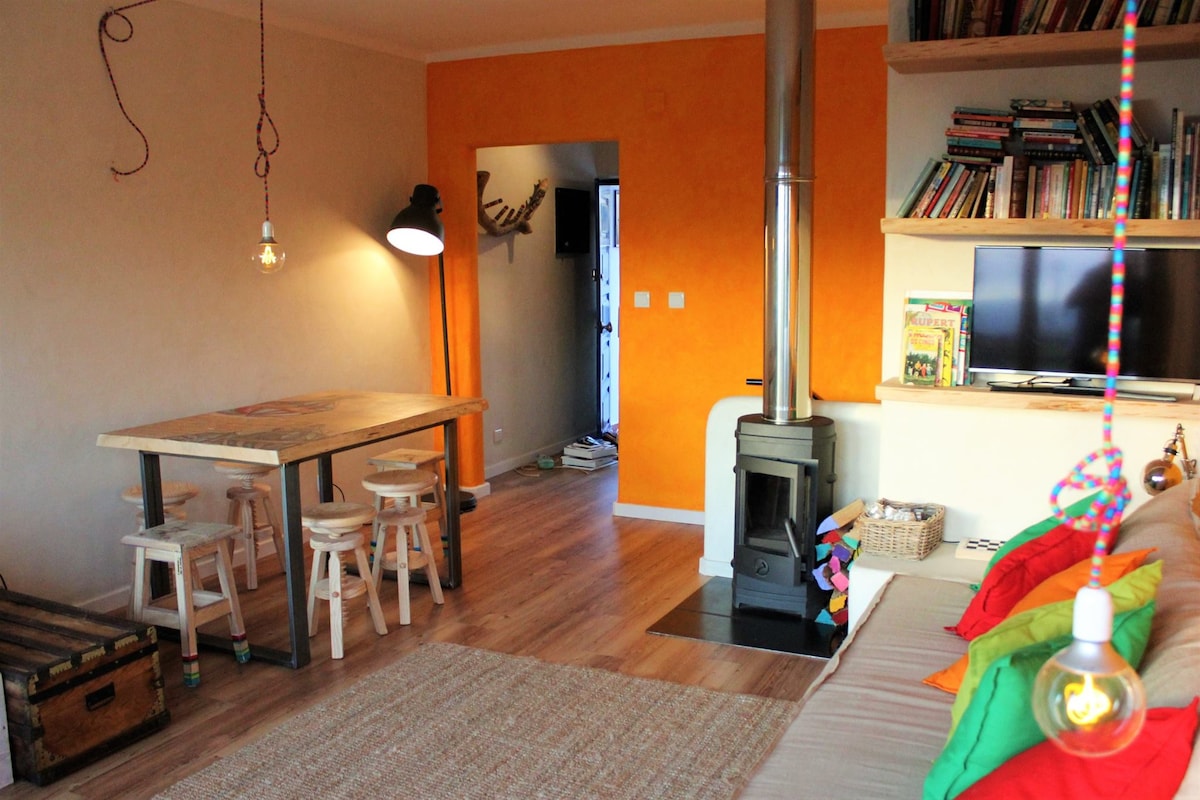 Casă cu 2 dormitoare frumos decorată într-o reședință privată și sigură. Priveliștea este absolut uluitoare, iar locația la câteva minute de mers pe jos de plajele de surf și de sat este tot ce ai nevoie pentru a te bucura pe deplin de acest mic paradis numit Ericeira. Wi-Fi gratuit, televiziune prin cablu, bucătărie complet utilată, cu toate utilajele de dorit, pentru a-ți face viața mai ușoară în timpul vacanțelor.