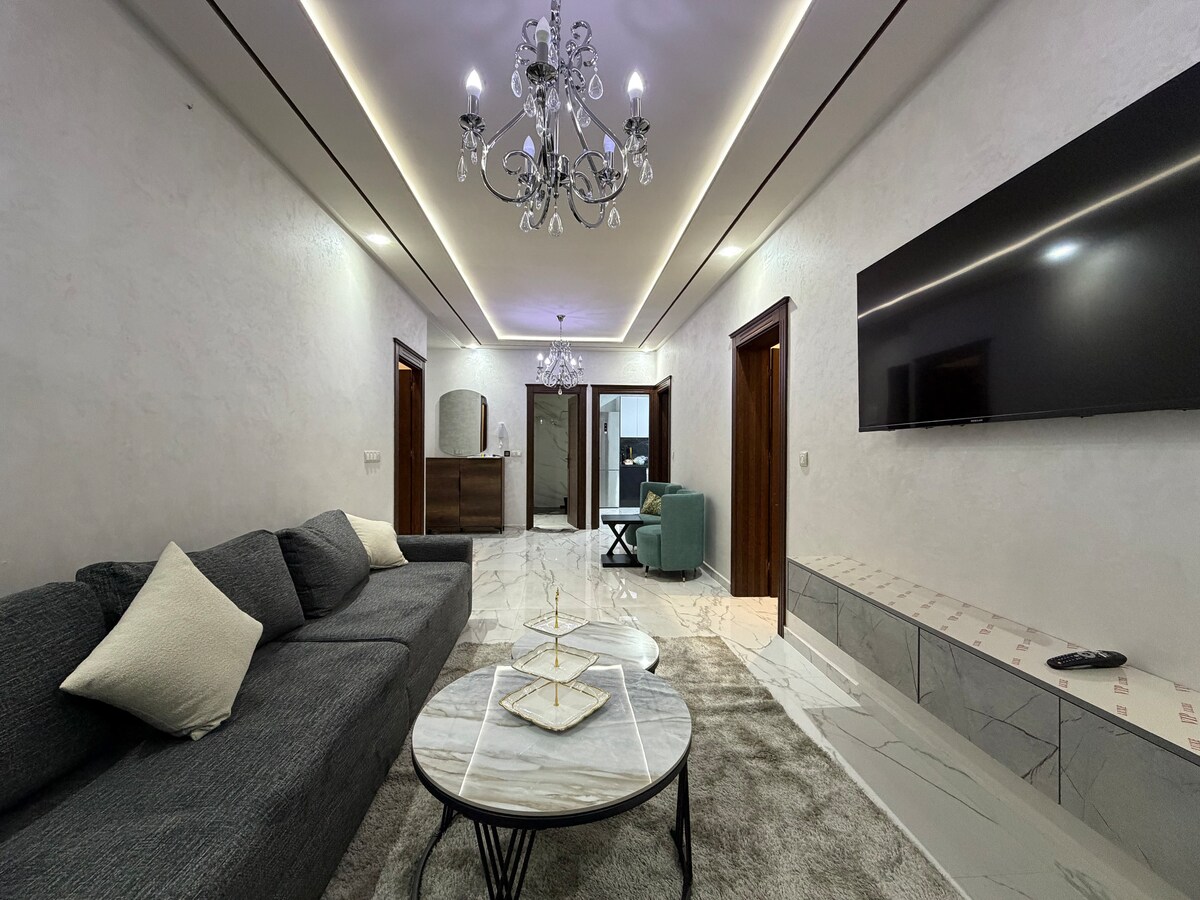 ✨ Apartament de lux în inima orașului Nador, 2 dormitoare cu suită matrimonială și 2 băi. Living elegant, bucătărie complet utilată, Wi-Fi de mare viteză și Smart TV. Aproape de mare, de bulevard, de cafenele, de restaurante și de magazine. Perfect pentru familii, cupluri sau călătorii de afaceri. Confort, stil și poziție excelentă, toate într-un singur loc!