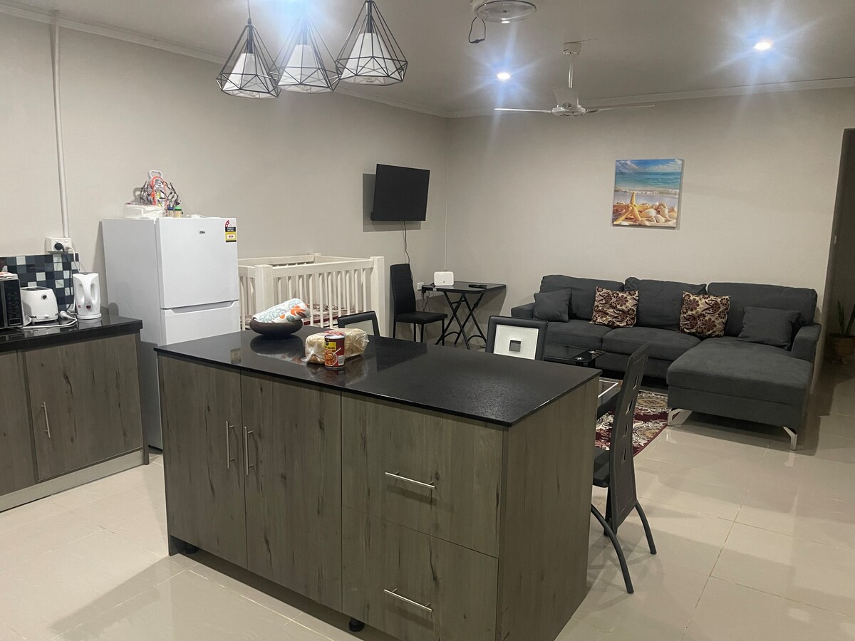 Cazează-te în inima centrului orașului Namaka! Acest apartament confortabil cu 1 dormitor se află la doar 5 minute de Aeroportul Internațional Nadi și la 2 minute de mers pe jos de Shop N Save, cafenele, restaurante și bănci. Acces ușor la taxiuri și locuri-cheie, cum ar fi sensul giratoriu Votualevu, supermarketul NewWorld și Grace Road Eatery. Preluare/predare la aeroport disponibilă pentru 20 $ FJD, Denarau pentru 35 $ FJD. Confort la ușa ta!”