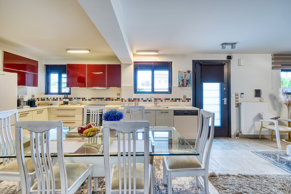 Sunny, and comfortable apartment with a splendid balcony with unique views of Bourtzi and Palamidi. Our place is located just outside the historical part of Nafplio. Shopping, restaurants, and bars are easily accesible on foot but we also provide free parking. The apartment is fully air-conditioned and with strong Wi-Fi in all rooms and can host up to seven guests in comfort and style.