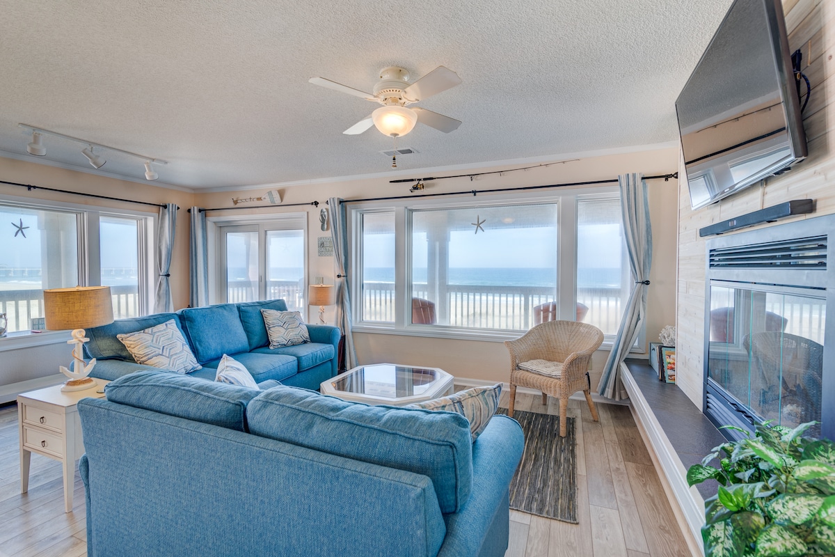 Bine ai venit la CABANA Corolla Luxury Rentals CURTIN'S din Corolla! Un IMENS apartament cu 2 dormitoare și 2 băi. ~ 1500mp! Deținut de: Kevin și Laura Curtin de Corolla Luxury Rentals Lisa Ryan Ieși pe ușă și intră pe plajă! ~ 25 ft până la accesul la plajă ~ Vedere la ocean și apus de soare de pe punțile comune - etajul 2 ~ Cadă cu hidromasaj pe tot parcursul anului (comună) ~ Piscină (comună) ~Sezonieră ~ Locuri de dormit 6 - Queen BR, 2 paturi supraetajate + pat de dormit Q ~ Șemineu electric ~ Masă arcade ~ Bucătărie completă cu cuptor cu friteuză cu aer ~ Echipament de plajă - vagon, plăci boogie, nisip