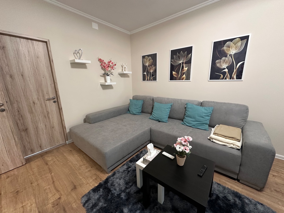 Apartament complet echipat, modern, care este garantat a fi așa cum este ilustrat în direct. Apartamentul este situat la etajul 4, există un lift. Ofer parcare gratuită la cerere IMPORTANT: Vă rugăm să indicați acest lucru în momentul rezervării, deoarece bariera poate fi deschisă cu o telecomandă! Wi-Fi, Netflix este disponibil în locuință. Există, de asemenea, un restaurant, un magazin de proximitate, o farmacie în parcul de apartamente. Uscător de păr, prosoape, săpun de corp, lenjerie de pat, cafea și ceai, nu le aduce cu tine!