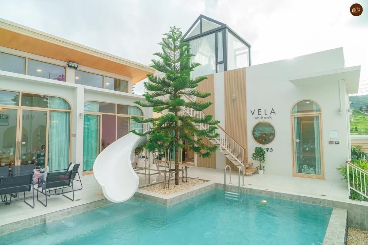 Escape to the misty highlands of Khao Kho in this modern 3-bedroom pool villa. Start your morning with cool mountain air and a private pool all to yourself, cook up a feast in the fully equipped kitchen, then end the night singing karaoke with your crew in the dedicated party lounge. Ideal for family trips, friend groups, or anyone who wants comfort, privacy, and a little adventure in the mountains.