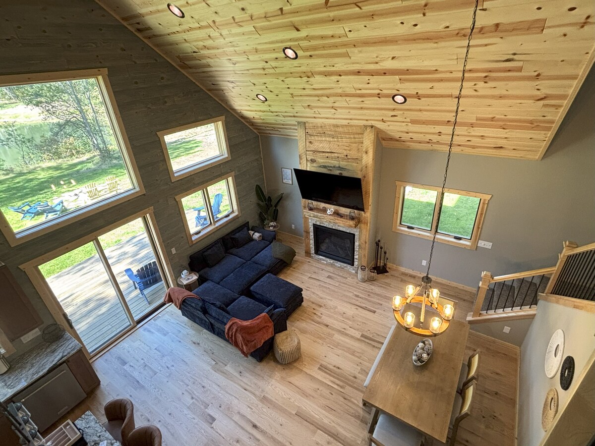 Bine ai venit în cabana noastră, refugiul tău Northwoods pe tot parcursul anului! Relaxează-te cu întreaga familie în această cabană nou construită, care este amplasată într-o comunitate liniștită și privată, cu un iaz liniștit înconjurat de 28 de acri de pădure. La câteva minute de Hayward, cu acces convenabil la pescuit, trasee de schi și ciclism, drumeții, ATV și trasee pentru snowmobil. Concepută pentru confortul oaspeților, cabana oferă un amestec perfect de mobilier boho-chic, creând un refugiu liniștit, confortabil și natural, dar elegant.