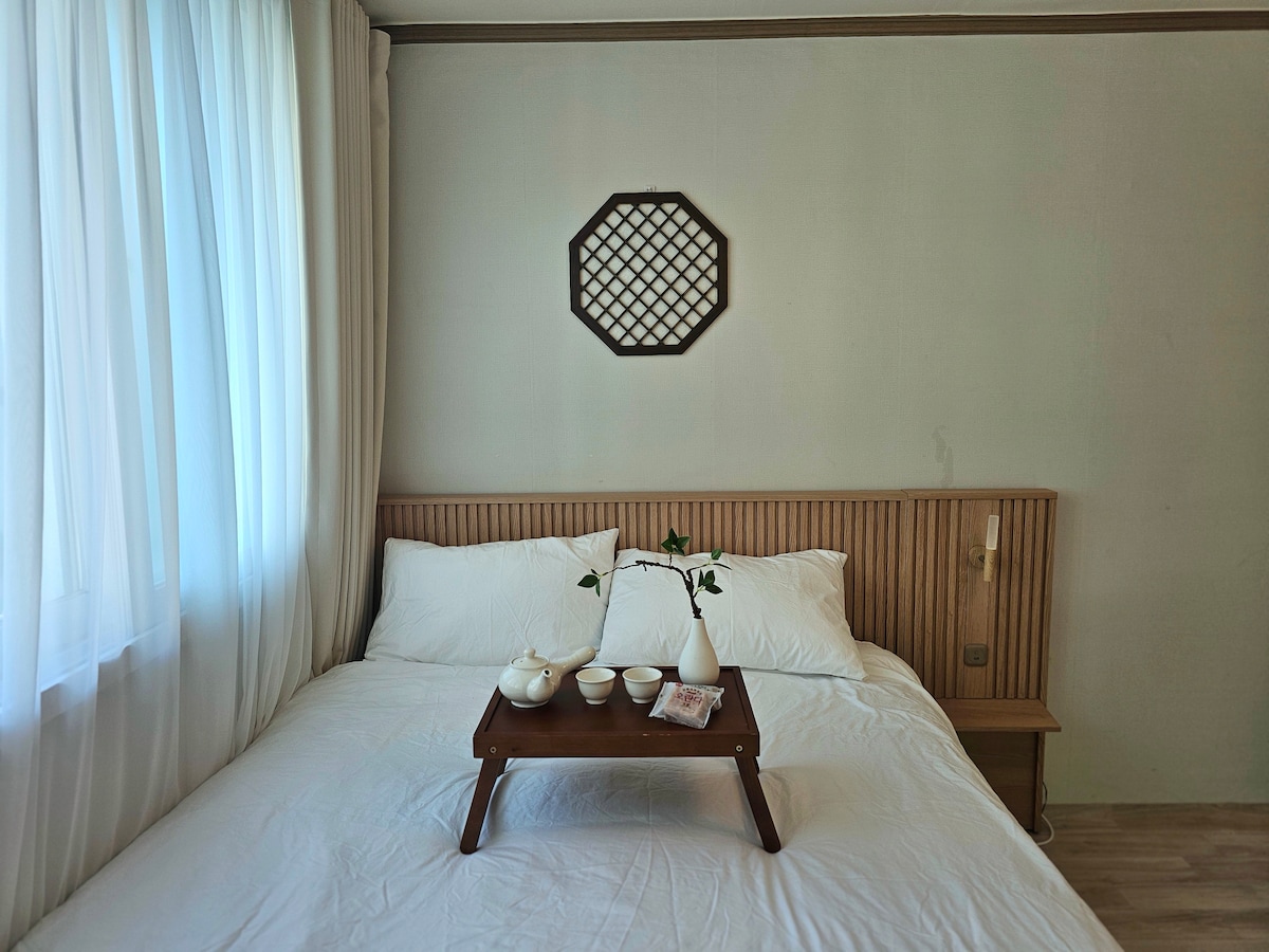 „Sowoljeong” este o unitate de cazare hanok desemnată oficial de Seoul City-Hanok Experience Business și este disponibilă atât pentru coreeni, cât și pentru străini.☺️ Te poți vindeca în timp ce te uiți la curtea deschisă de la hinoki (cadă de chiparos). Bucură-te de o baie pe jumătate de corp în timp ce privești soarele în timpul zilei și stelele pe cerul de seară! Poți sta într-un Sowoljeong privat, poți lua o muncă departe de locul de muncă familiar sau nu poți face nimic și te poți concentra pe timpul petrecut cu tine sau cu cei dragi:) # London Bagel Museum # Există locuri fierbinți, cum ar fi Brutăria Artist, și poți ajunge pe jos la atracții turistice, cum ar fi Palatul Gyeongbokgung, Ikseon-dong și Euljiro. ☺️ [Prețul de bază este pentru 2 persoane] * Persoană suplimentară: 70.000 KRW (până la 4 persoane/recomandată pentru 2 persoane) * Pentru rezervări de 3 sau mai multe persoane, ai la dispoziție lenjerie de pat suplimentară. [Check-in anticipat/check-out tarif] * 20.000 KRW pe oră (până la 1 oră) * Dacă există mai multe persoane care vizitează decât numărul de persoane rezervate, vei fi înlăturat fără rambursare🙏