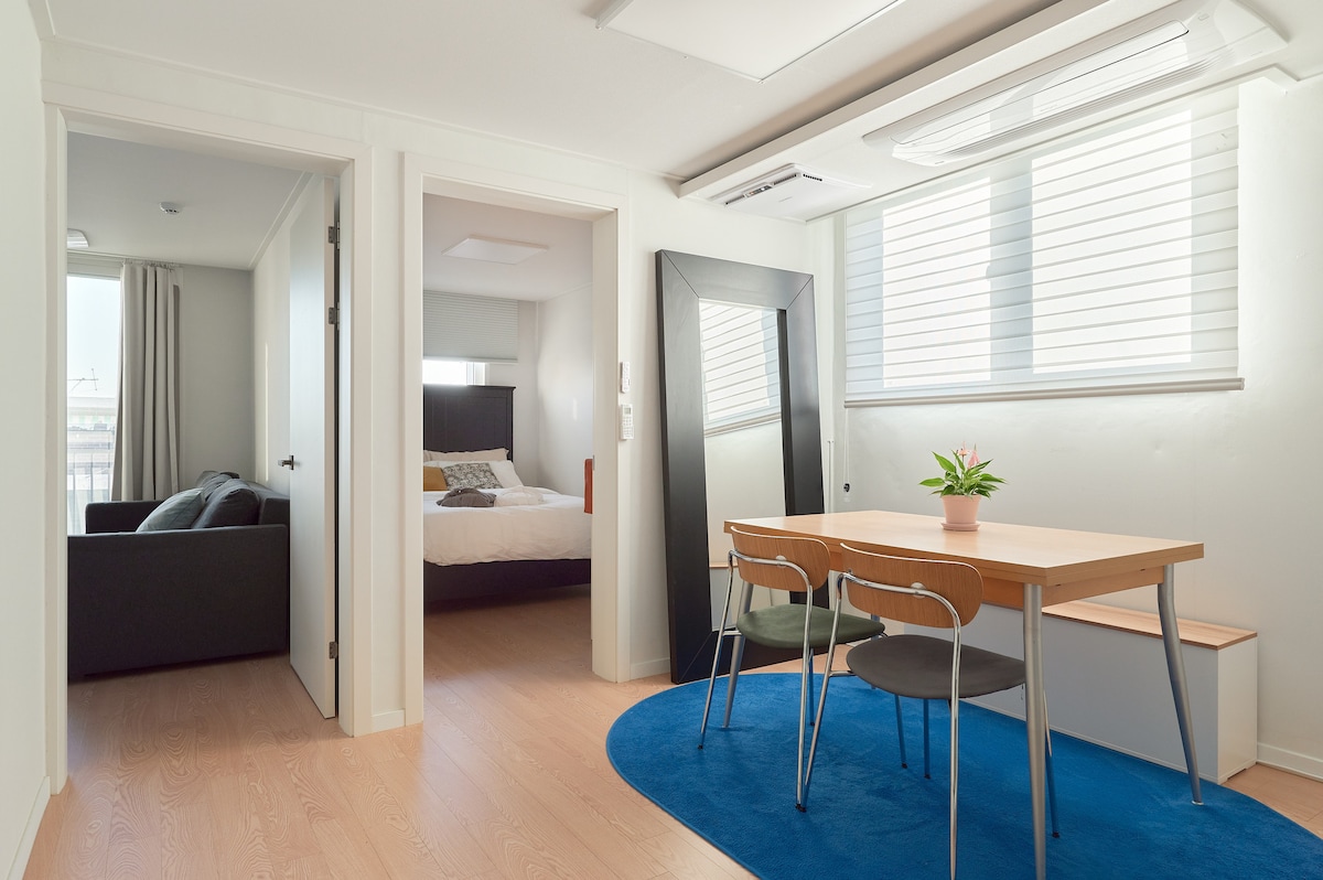 Rent full furnished room with reasonable budget in middle of Myeong-dong. (Beds room, Living room with kitchen) It's located 5 minute walking distance from Myeong-dong station also airbus station. You can even use a small balcony inside the gate comfortably. It is decorated with about 36 square meter of space! We have everything you need to stay comfortably in the accommodation during the trip. So I guarantee your cozy bedding :)