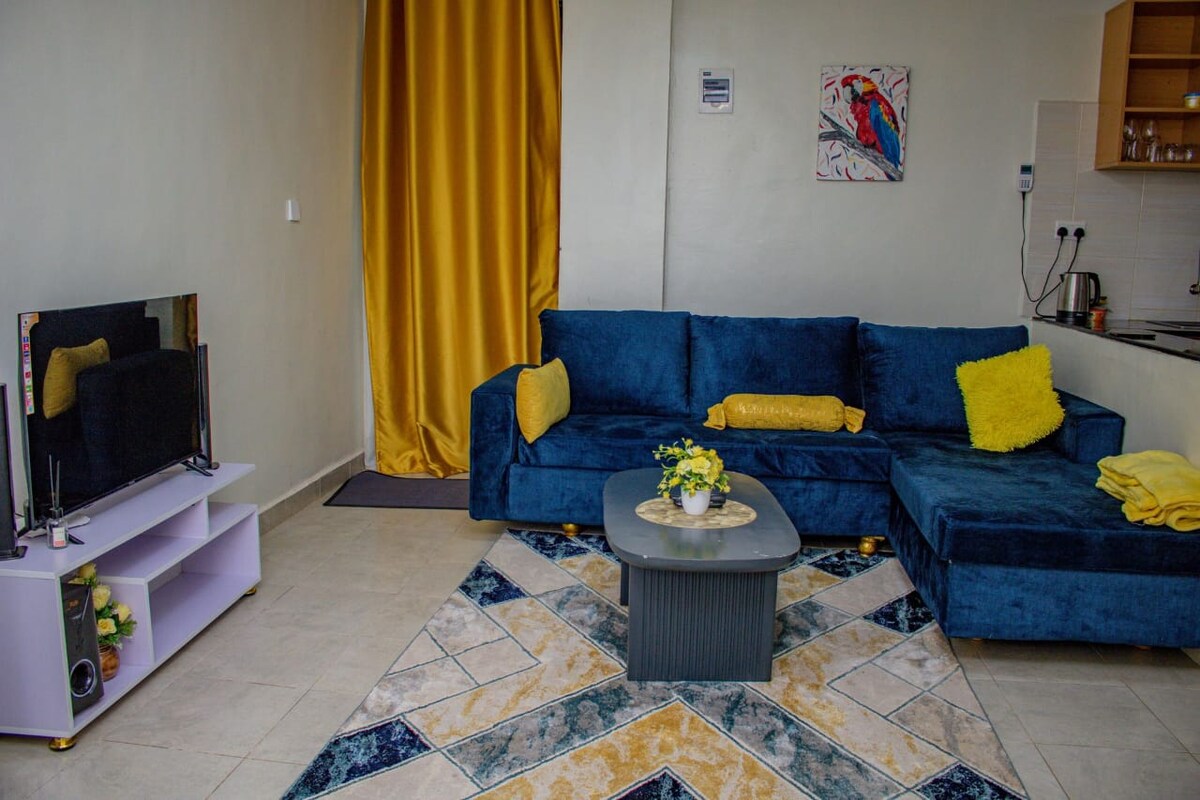 Enjoy a stylish experience at this centrally located apartment in the heart of Nanyuki town. Situated near the breathtaking Mount Kenya National Park and opposite Cedar Mall, this 1-bedroom apartment offers unmatched convenience and comfort to business and leisure guests. The apartment features modern furnishings, a fully equipped kitchen, high-speed WiFi, and a cosy living space. Perfect for unwinding after a day of exploring or working, it blends urban luxury with a warm, homely atmosphere.