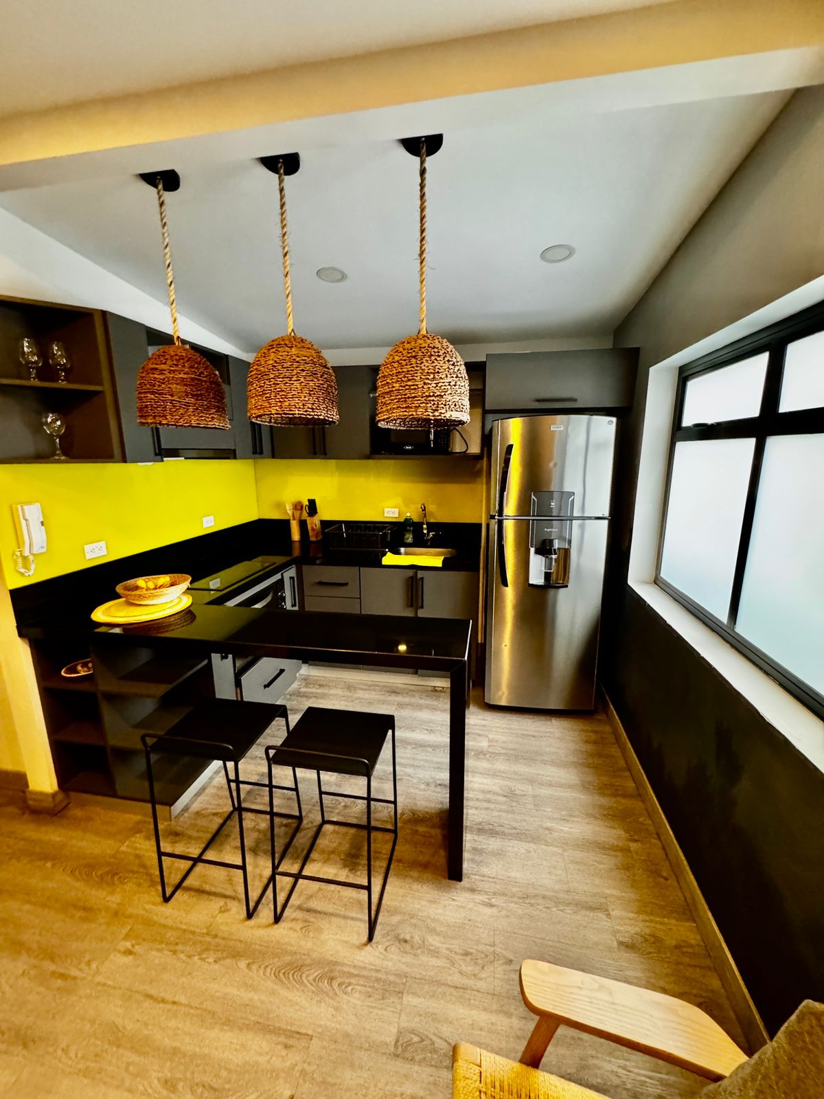 Disfruta de una experiencia con estilo en este alojamiento céntrico. Es un espacio moderno y con gran estilo, totalmente equipado para una estancia inolvidable. Una habitación, cama queen size y sofá cama, dos baños, ideal para 3 huéspedes. Cocina con equipos y lavadora secadora. Vive esta experiencia única en Medellín !