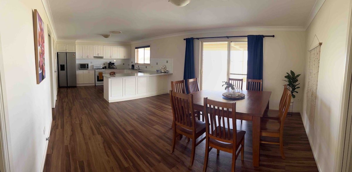 O mulțime de spațiu pentru distracție în familie sau în clubul de zbor sau aduceți o carte, relaxați-vă și gătiți cine frumoase în împrejurimi liniștite. La această fermă frumos restaurată, te poți plimba prin câmpurile de bumbac și grâu cu canguri, wallabies și o viață bogată a păsărilor. Pentru pasionații de stele din oraș, Calea Lactee este de neuitat. Găinile noastre crescute în aer liber vor fi foarte fericite să împartă și câteva ouă pentru micul dejun. Dacă zbori, politica noastră de anulare poate fi mai flexibilă