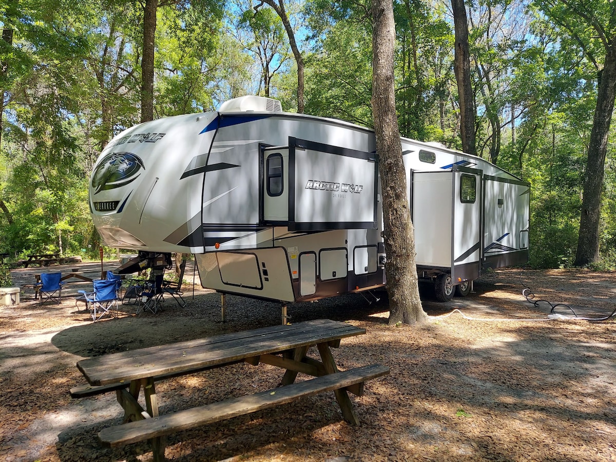 Hello and welcome to Big Dawg LUX. A "Turn Key" luxury RV rental service! We include everything from your pillows and bedsheets to outdoor chairs and fire pit. Our goal is bringing the comfort of your own home to the outdoors. No more hauling tents & chairs. Let us know where you want to go and we'll deliver everything for you anywhere in FL for $2.50 per mile starting from Tampa. All we have to do is change the location of the camper to whatever campsite and book it at that location.