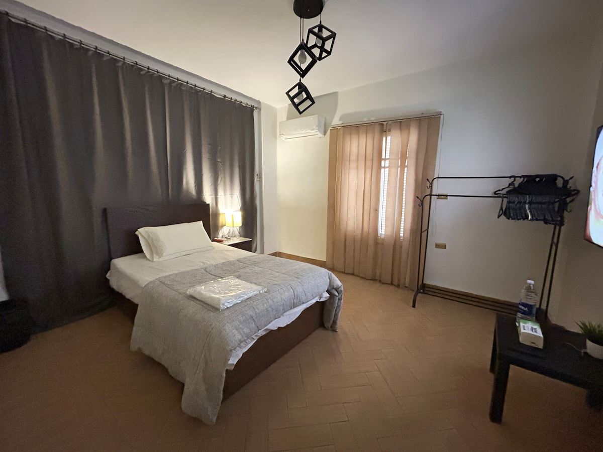 O casă de oaspeți confortabilă și primitoare în inima orașului Nasr - perfectă pentru călătorii care doresc confort și ospitalitate caldă. 10 minute până la aeroport, 20 de minute până în centru, 50 de minute până la Piramide Înconjurat de toate serviciile: cafenele, supermarketuri, restaurante și transport Cameră privată cu aer condiționat, baie privată și atmosferă relaxantă Ceai și cafea gratuite Găzduit de o Super-gazdă gata să te ajute cu orice ai nevoie O ședere lină și ușoară într-una dintre cele mai bine conectate zone din Cairo.