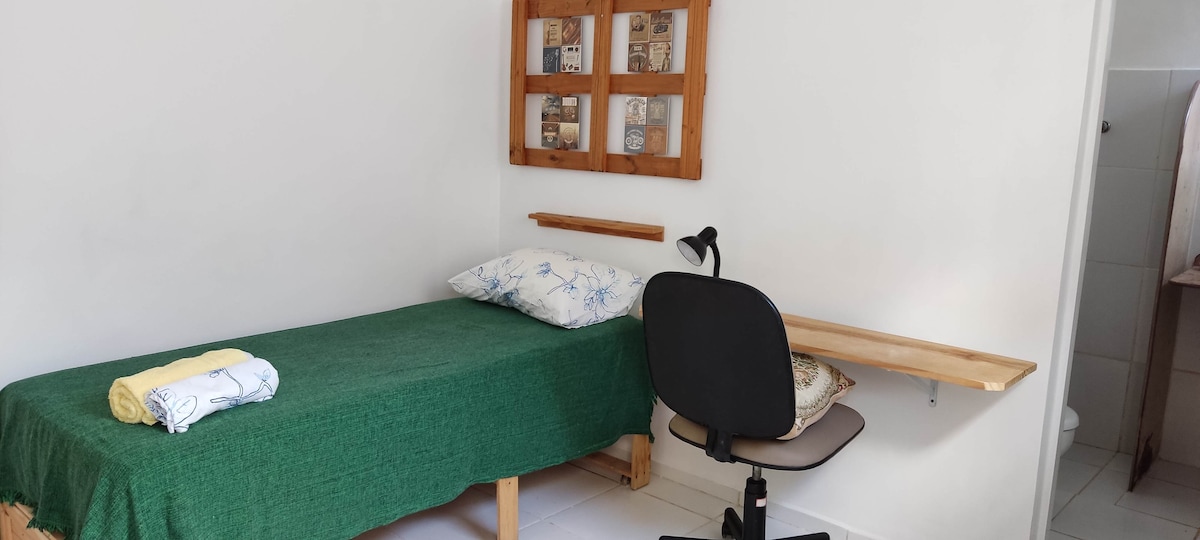 Casa în zona privilegiată Natal, la 300 m de supermarket, în apropiere de restaurante, snack baruri, spălătorie, bănci și comerț general și la puțin peste 1 km de Praia dos Artistas Cameră perfectă pentru cei care vin pentru muncă, studiu sau doresc să aibă un loc de odihnă, cu un raport calitate-preț excelent în timp ce se plimbă și cunosc orașul Complet privat, împărțind numai porțile și coridoarele de acces la cameră Paturi de o persoană, în caz de blat de pernă disponibil, poți solicita un pat matrimonial, vezi fotografiile