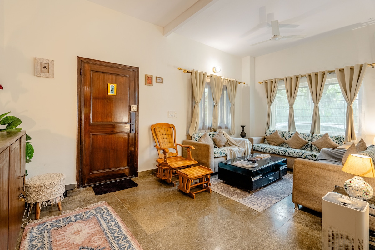 Apartamentul nostru cu două dormitoare are o adevărată senzație de oraș. Se potrivește confortabil cu patru persoane. Vei avea tot apartamentul doar pentru tine — o grădină frumoasă, o bucătărie bine echipată și un birou confortabil. Apartamentul oferă acces facil la complexul istoric Qutab Minar, diverse parcuri și centre comerciale cu restaurante și cinematografe. Se află, de asemenea, la câțiva pași de spitalele Max și Max Smart Super Speciality. Deplasarea este convenabilă cu metroul (linia galbenă) la doar două minute de mers pe jos.