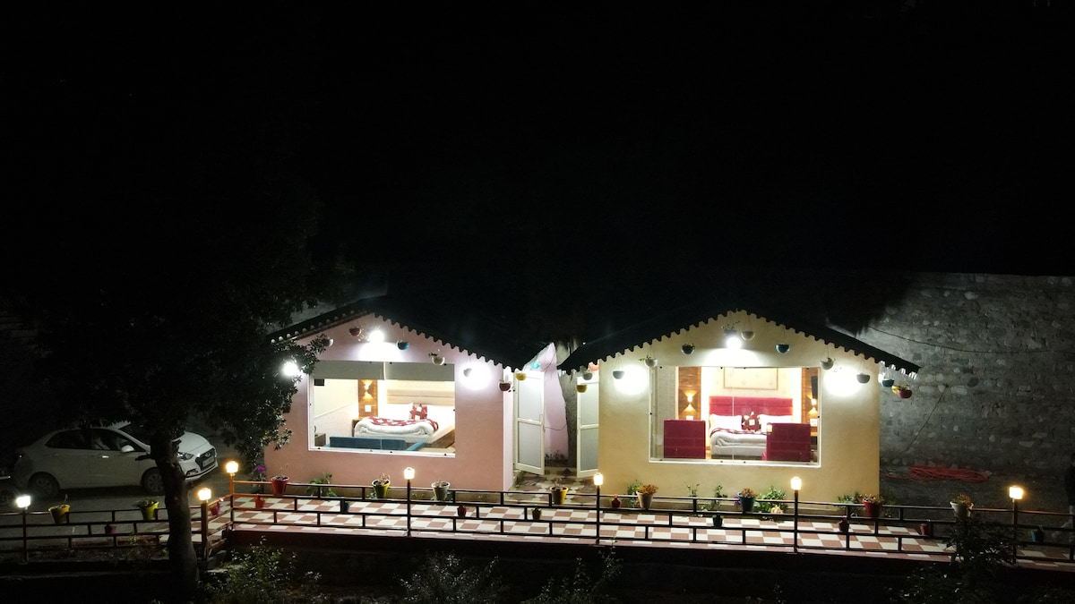 Perched on a peaceful hillside near Bhimtal within an estate, this hillside stay combines natural charm with modern comfort. With scenic views, it features a king-sized bed, wooden interiors, and a 32” TV; it’s designed for relaxation. Guests can savour sunset & sunrise vistas, unwind on the lawn with a BBQ & bonfire, or enjoy meals at the in-house dining. Close to Chota Kailash Dwar, trekking trails, Naukuchiatal (11.4 km) and the paragliding site (8.3 km), perfect for calm and adventure.