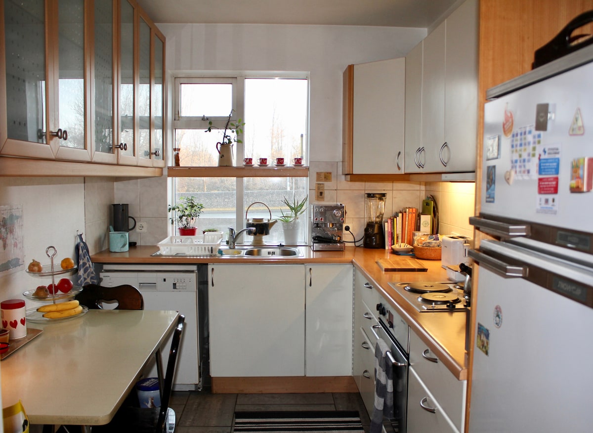 Haven-ul nostru confortabil este o mini casă luminoasă și frumoasă situată în inima orașului Reykjavik. Vei fi la mică distanță de mers pe jos de cafenele confortabile, restaurante, brutării, piscină, muzee, port și magazin alimentar local, dar și într-un cartier privat confortabil pentru a te putea relaxa și destinde seara. Locuința noastră se află la 4 minute de mers pe jos de terminalul de autobuz Rvk BSI, care poate fi util după un zbor lung. Principala stradă comercială Laugavegur este, de asemenea, în apropiere, la 10 minute de mers pe jos.
