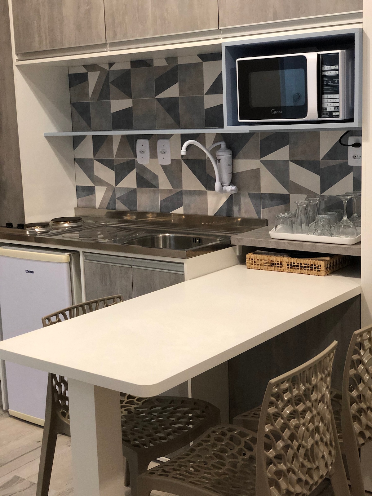 Kitnet complet. Lângă BR-101. Wi-Fi, aer condiționat și bucătărie.