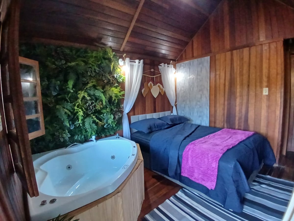 Suntem încântați să vă prezentăm bungaloul nostru. Recent construit și special conceput pentru cupluri, este cea mai recentă unitate de găzduire. Este de 100mt² de mare confort. O structură completă cu totul planificat pentru bunăstarea ta. Acesta are living, bucatarie utilata, suita cu dulap, baie, zona de servicii, balcon cu cadă cu hidromasaj și 180° vedere la Mantiqueira Mountain. Un mediu îmbrățișat de natură, pregătit cu grijă pentru a oferi momente de neuitat.