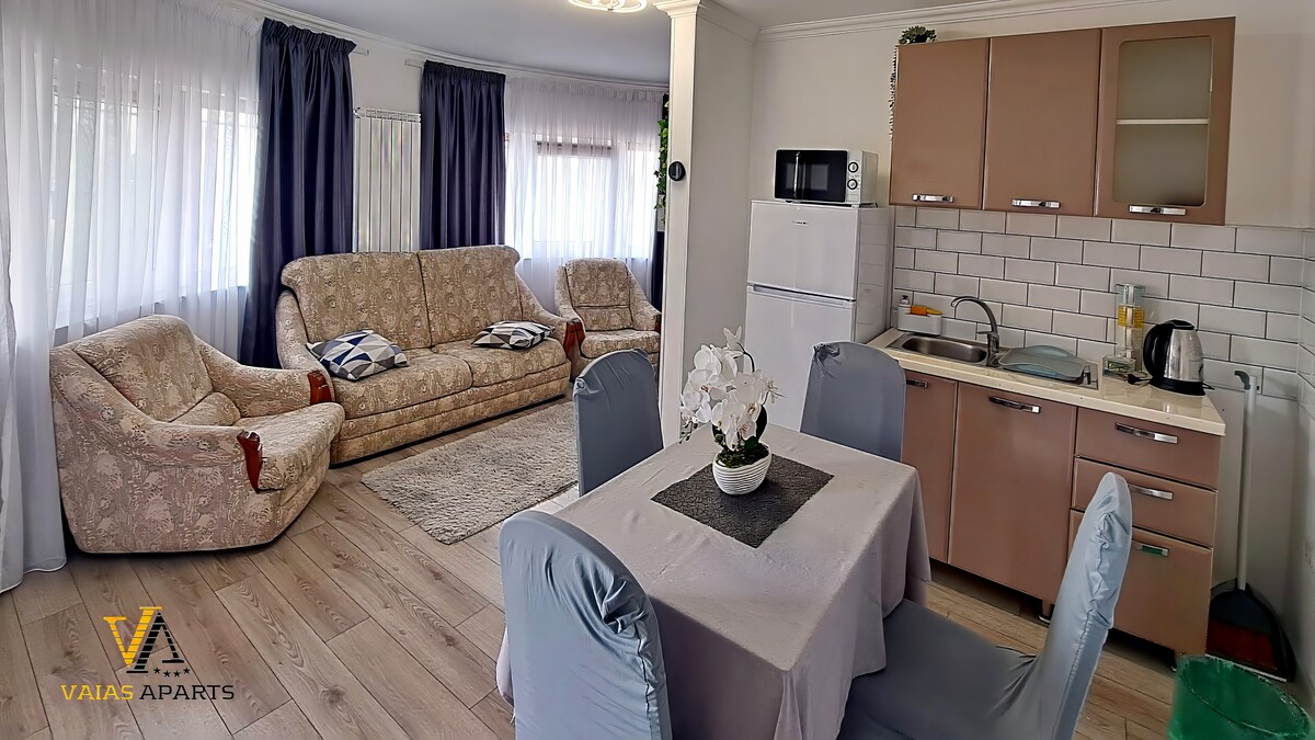 Bine ai venit într-un apartament luminos și confortabil din Tîrgu Neamț, parte din Vila Vaias Aparts, situat într-o zonă liniștită și sigură, aproape de Cetatea Neamțului. Spațiul îmbină confortul modern cu o atmosferă relaxantă.