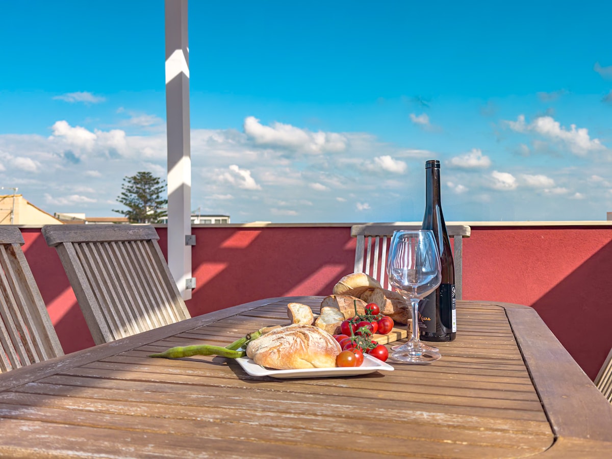 Apartamentul a fost complet renovat recent și a fost finalizat în conformitate cu liniile culturale siciliene. Acesta este situat la câțiva metri de mare și de centrul istoric și are, de asemenea, un mic colț de paradis pe terasă, unde puteți aprecia particularitatea insulei cu o vedere de neratat la mare.
