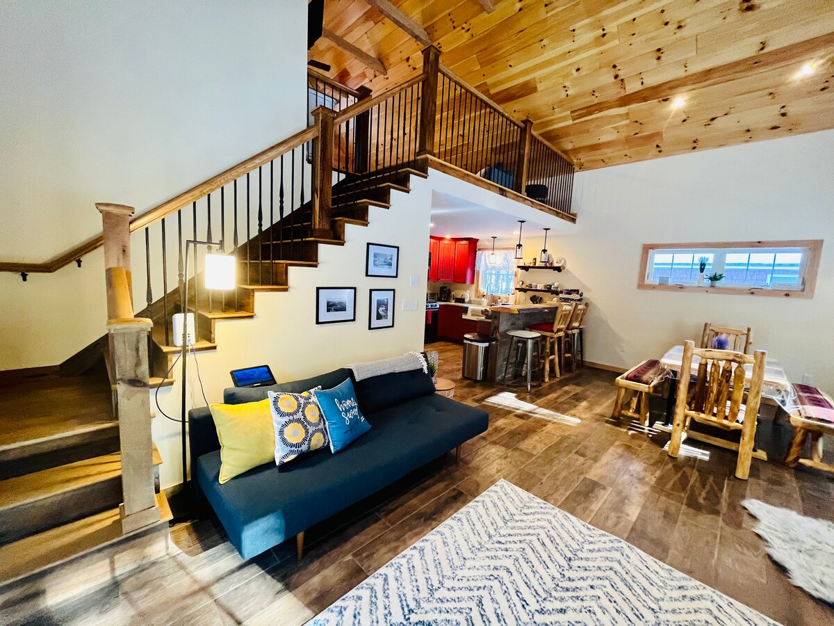 Bine ai venit în cabana în stil elvețian a familiei noastre! Inspirat de călătoriile la Davos, Elveția, bunicii mei au construit cabana în anii 1950 pentru a fi o casă de joacă de familie și un loc de adunare pentru cei 6 copii ai lor. E un fel de magie. Astăzi, marea noastră familie extinsă încă se bucură de sărbători aici în fiecare an. Copiilor noștri le place să exploreze traseele de pădure și să înoate în iazul Center Pond. Sperăm să vă placă la fel de mult ca nouă! Notă: clădirea are, de asemenea, două apartamente la primul etaj.