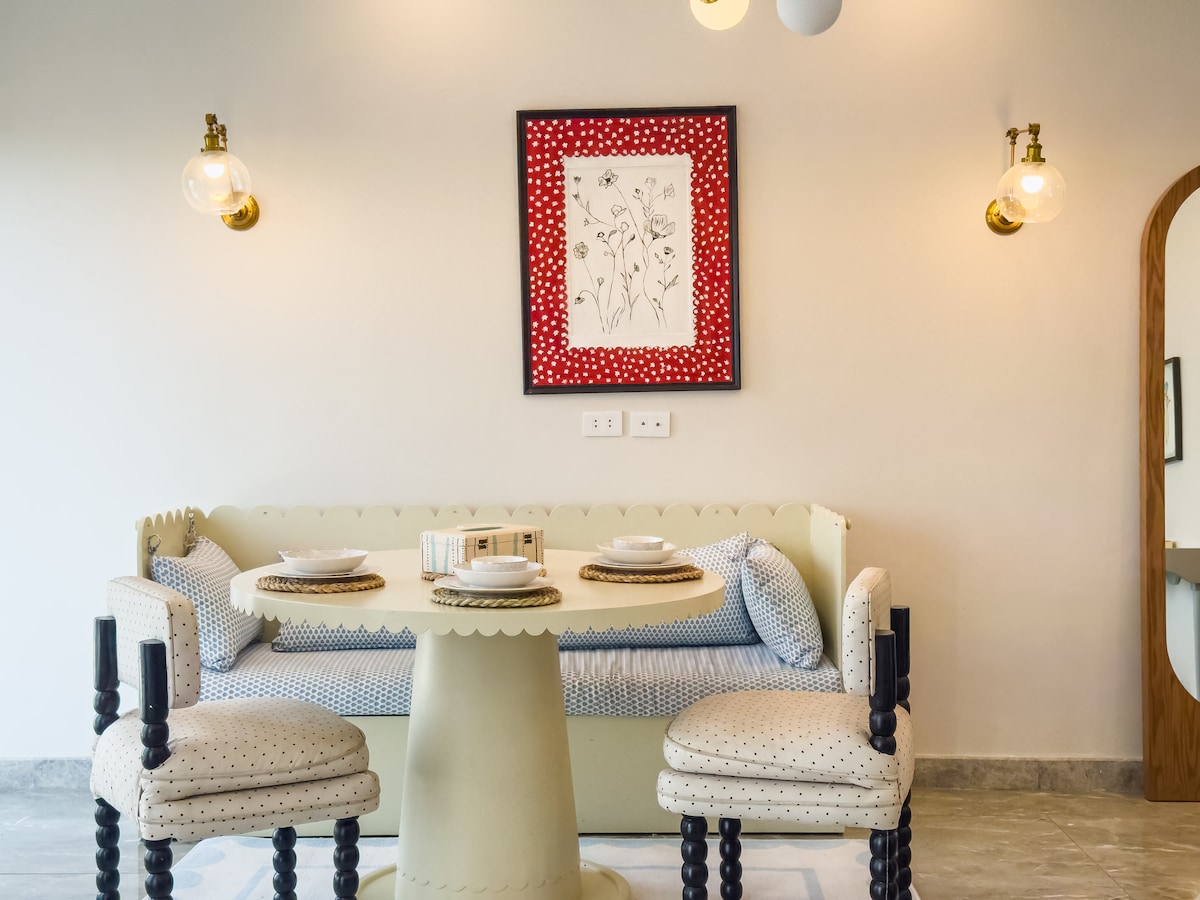 Boho Garden Retreat is a cozy 2BR apartment in a premium gated compound near AUC and Point 90 Mall, New Cairo. Enjoy a peaceful garden view from the first floor, full A/C, fast WiFi, Smart TV, and a fully equipped kitchen. Guests have access to a pool with sunbeds, a garden, and free street parking. Ideal for families, friends, or remote work. Quiet hours may apply due to nearby construction (9 AM–4 PM, except Fridays).