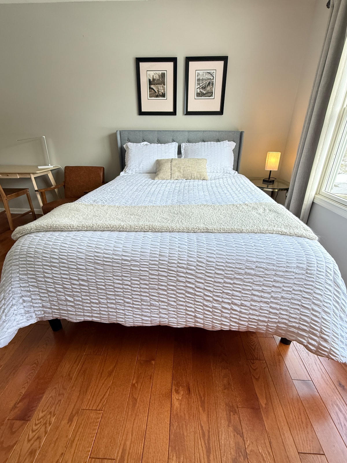 Cazează-te la The Lofts at Kearny, un amestec plin de lumină de caracter loft clasic și o viață curată și confortabilă. Acest loft 2BR are o zonă de living deschisă însorită, tavane înalte, ferestre uriașe, un dormitor matrimonial și o cameră cu pat supraetajat. Cu Wi-Fi rapid, mașină de spălat/uscător, bucătărie completă și spațiu de lucru, este configurat pentru șederi mai lungi. Relaxează-te în lounge-ul confortabil sau îndreaptă-te spre sala de sport comună și terasa în aer liber cu grătare. Chiar lângă New York, cu mai mult spațiu, mai multă lumină și mult mai calm.