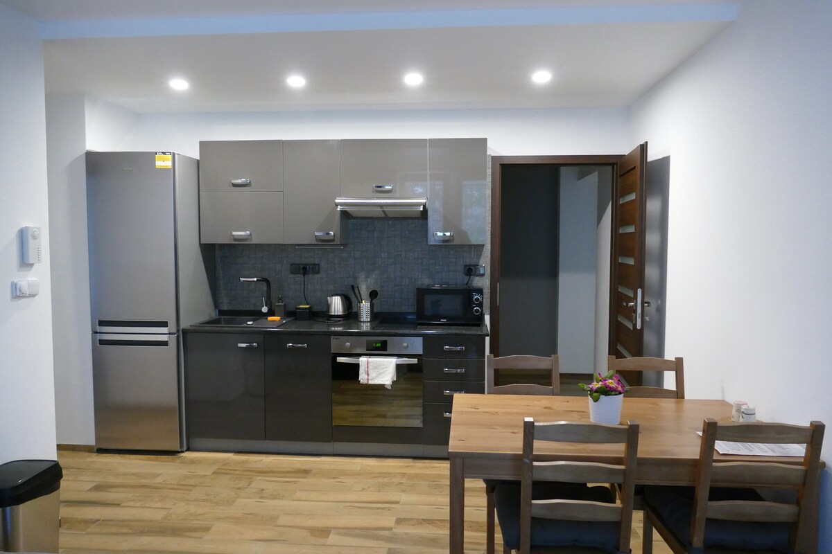 APT is not shared. Not suitable for infants-if we agree,the infant pays the fee for an additional person.Reservation of 3+ -I will send a special offer.The APT is 3+1, 2 rooms are lockable. Accommodation- guests 4+ will be available use 3rd room-otherwise for an fee. Using basicly-1 bedroom+dining room+kitchen for rent. Bedroom - double bed+sofa bed suitable as a bed. Kitchen fully equipped. Parking on the street for free. Raised children from 6 years are welcome. Sofa by kitchen-not for sleep.