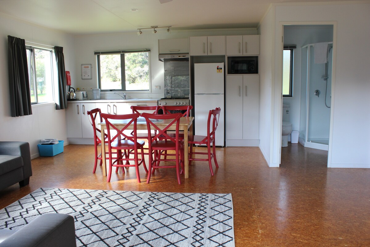 Tabăra noastră principală, viu colorată , este un refugiu complet autonom, la doar 150 m de una dintre cele mai frumoase plaje din Noua Zeelandă! Dormind până la 86 de oaspeți în spații de cazare în stil supraetajat, acesta este locul perfect pentru a petrece reuniunea de familie, tabăra școlară sau escapada în grup. Dispunând de două zone de lounge, o bucătărie și o sală de mese bine amenajate, un hol mare de recreere, spălătorie cu plată și două băi mari. **Tarifele afișate sunt pentru 40 de persoane** Oaspeții suplimentari sunt de 20 NZD de persoană/noapte plătibili direct.